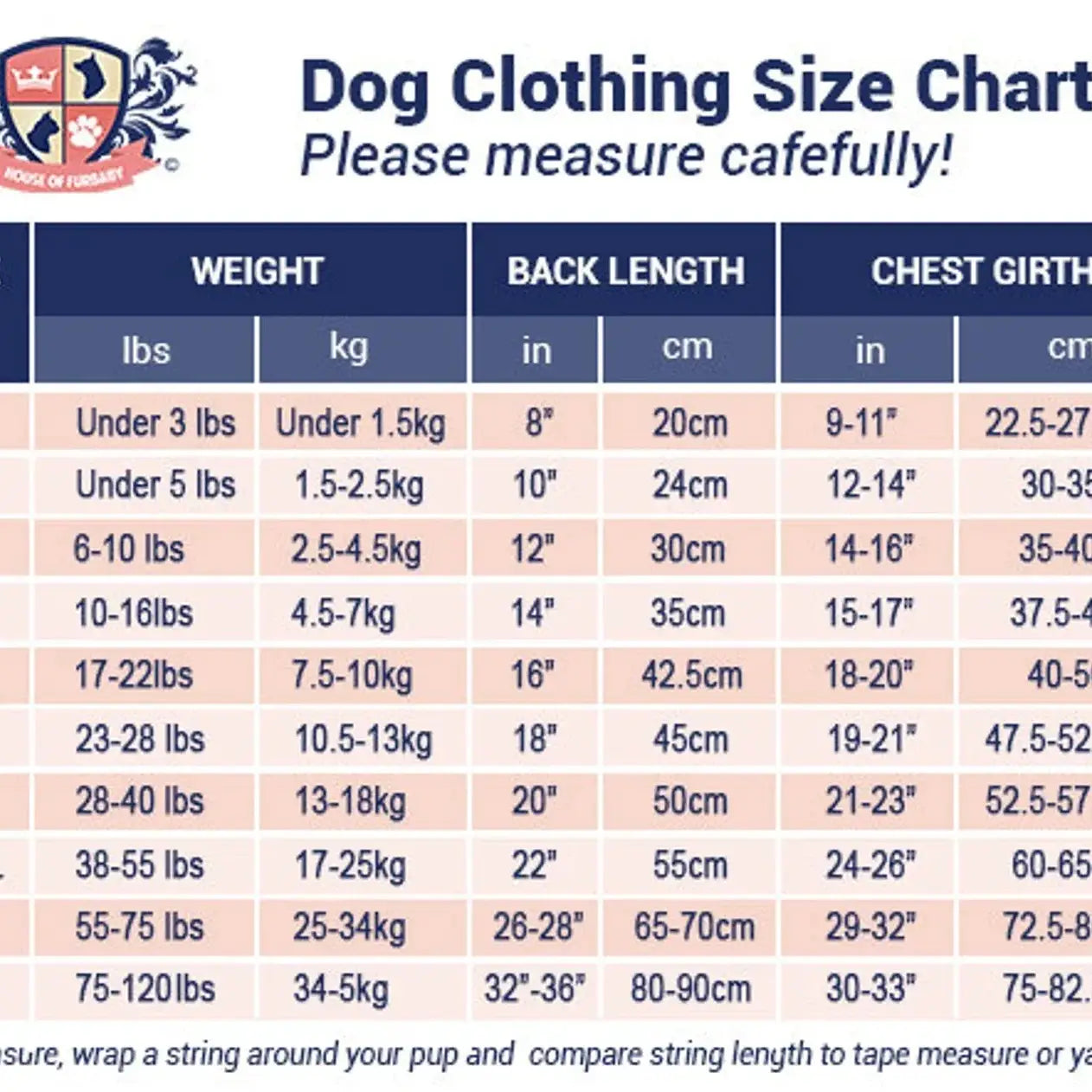 See size chart in pics. Sizes are suggested based on our historical customers. All pups are different. Please measure and compare to our size chart.